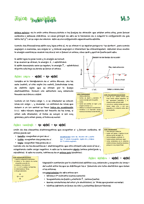Apuntes del enlace químico con anotaciones y muchas imágenes de ayuda, ideal para exámenes y selectividad.