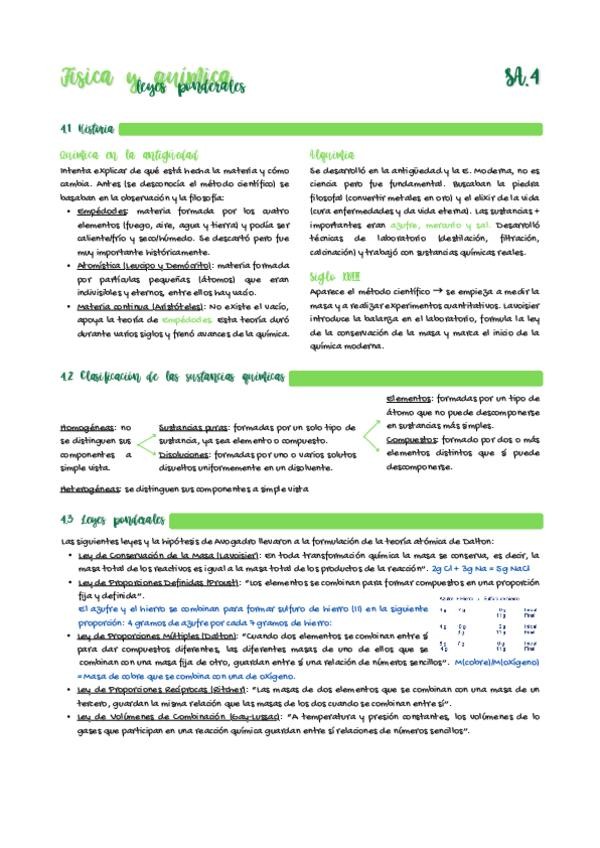 Apuntes de física y química sobre las leyes ponderales, la historia de la química, las medidas de la cantidad de sustancia...