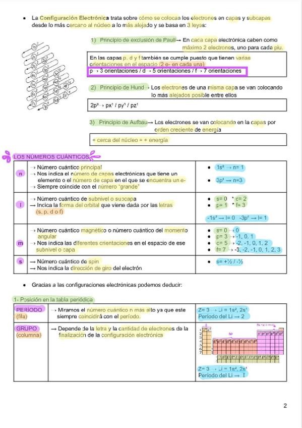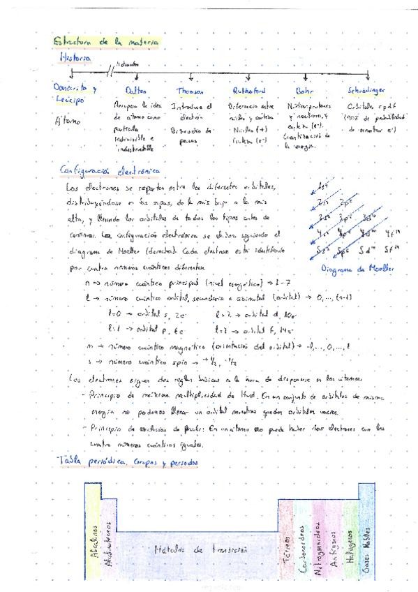 Resumen de estructura de la materia (configuración electrónica, tabla periódica y propiedades periódicas).