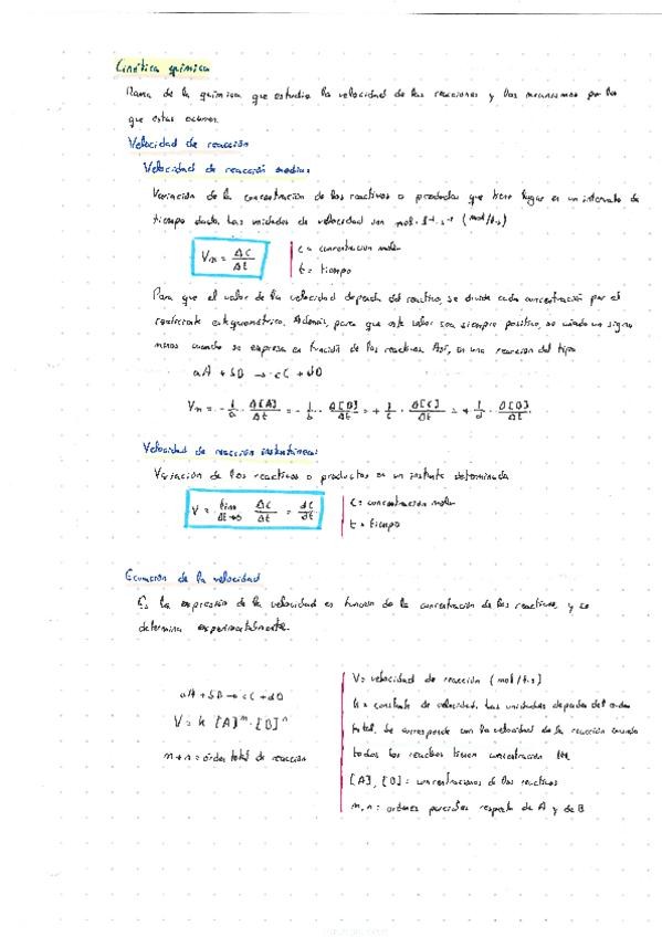 Resumen sobre cinética química (velocidad de reacción, mecanismos de reacción y teoría de las reacciones químicas). Con cuestiones.