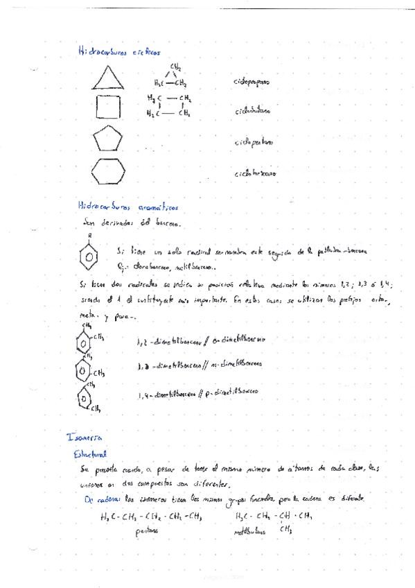 Dos resúmenes de química orgánica en página y media.
