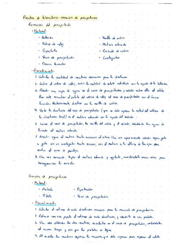 Práctica de laboratorio: reacción de precipitación. Materiales y procedimiento