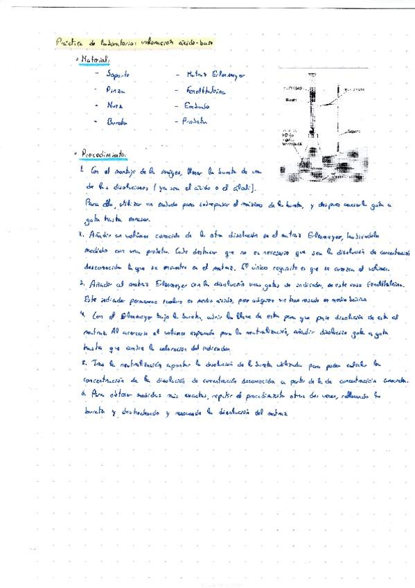 Práctica de laboratorio: valoración ácido-base. Materiales y procedimiento