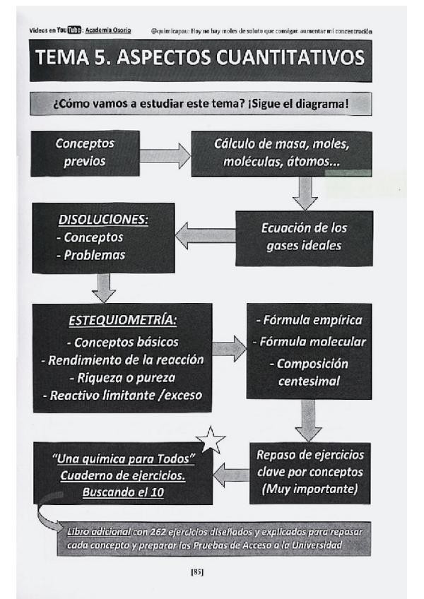 Aspectos cuantitativos de las disoluciones y estequiometría. Incluye conceptos, cálculo de moles, átomos, moléculas y masa, ecuaciones como la de los gases ideales, de disoluciones y de estequiometría. Tema de conceptos y fórmulas, con ejercicios para apl