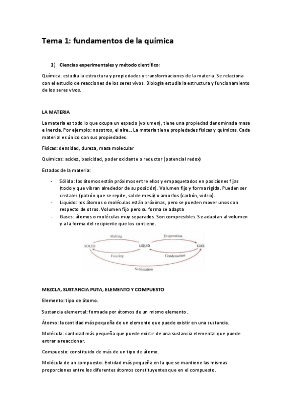 He publicado nuevos apuntes de 1º Química: 1º parcial castellano