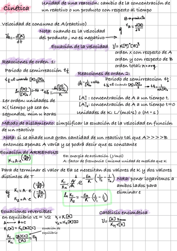 He publicado nuevos apuntes de 1º Química: Fórmulas de Cinética explicadas.pdf