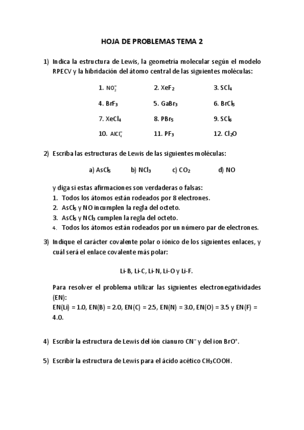 teoría química (con ejercicios)