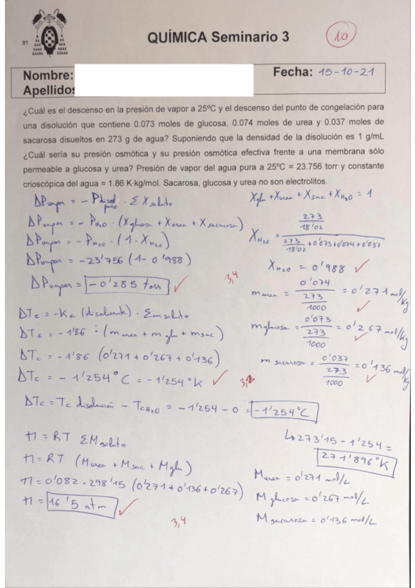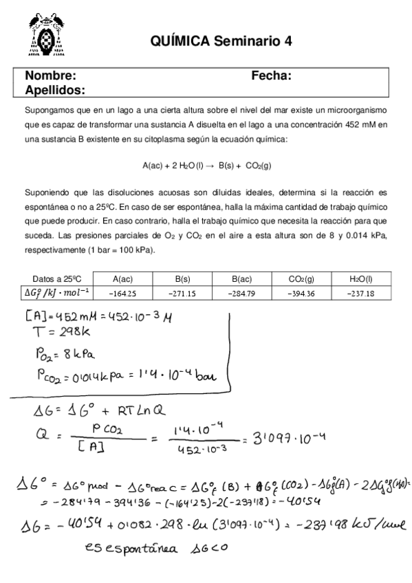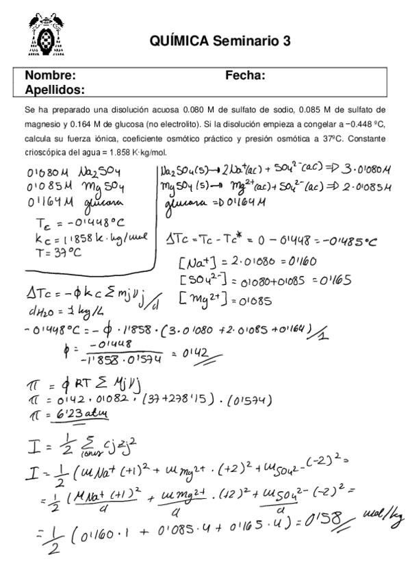 Seminarios resueltos y corregidos por el profesor.