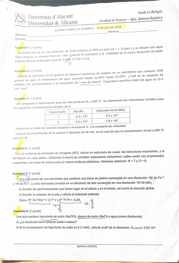 Exámenes química
