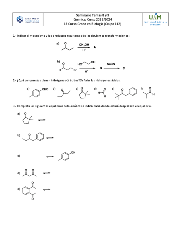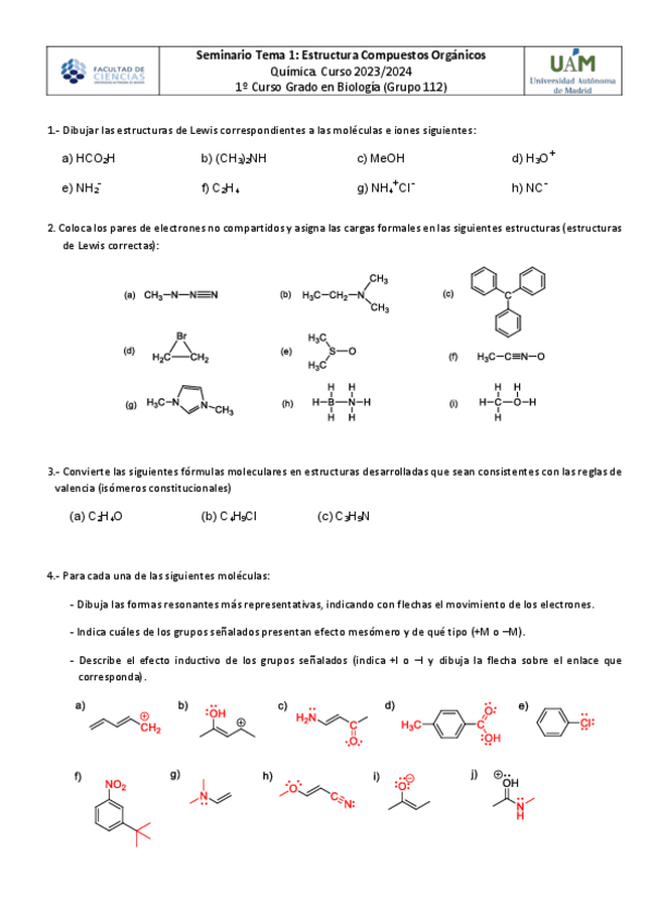 He publicado nuevos ejercicios de 1º Química: Ejercicios SEMINARIOS ÓRGANICA 2025