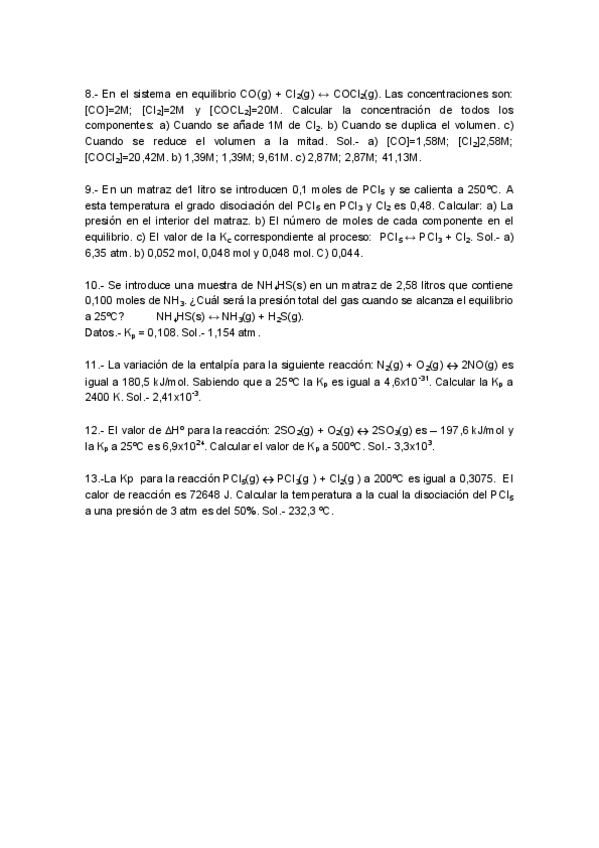 Ejercicos RESUELTOS: Equilibrio químico
