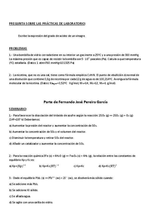 He publicado nuevos practicas de 1º Química: Prácticas Inorgánica Examen