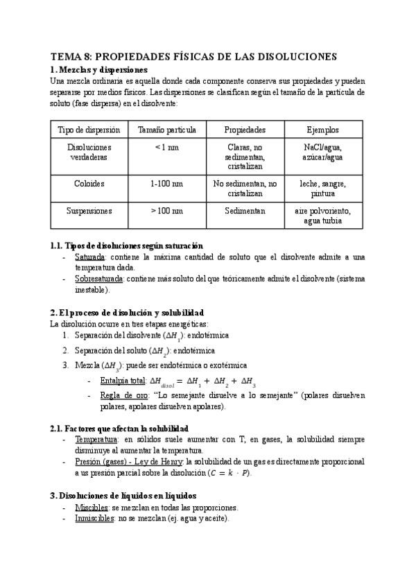 apuntes tema 8 propiedades físicas de las disoluciones, con formulario completo al final