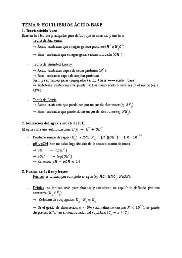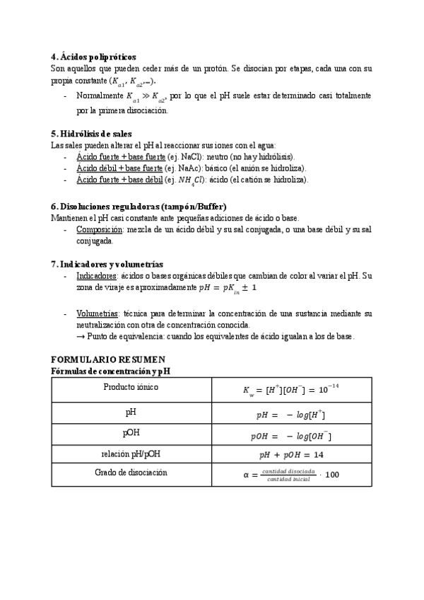 apuntes equilibrios ácido-base con un formulario al final con todas las fórmulas necesarias