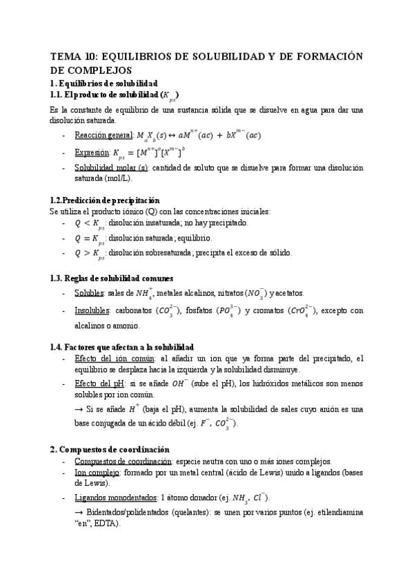 apuntes de equilibrios de solubilidad y formación de complejos, con formulario completo al final