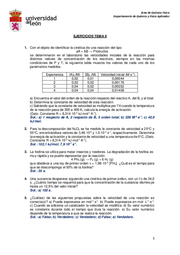 He publicado nuevos ejercicios de 1º Química: Problemas Ambos Parciales