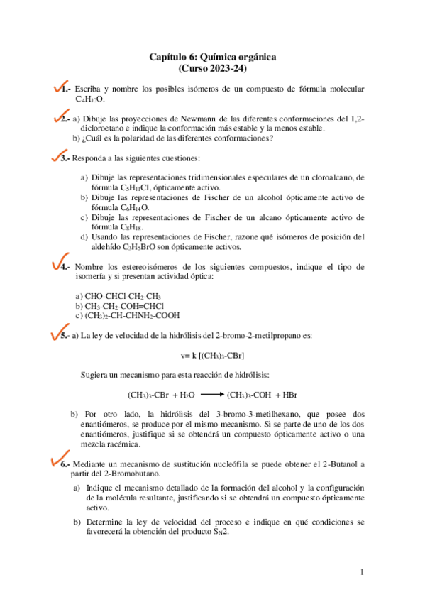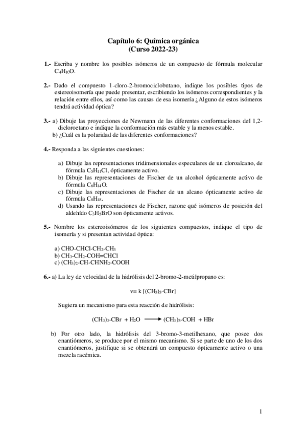 PROBLEMAS CAPITULO 6 QUÍMICA ORGÁNICA 2024 2025