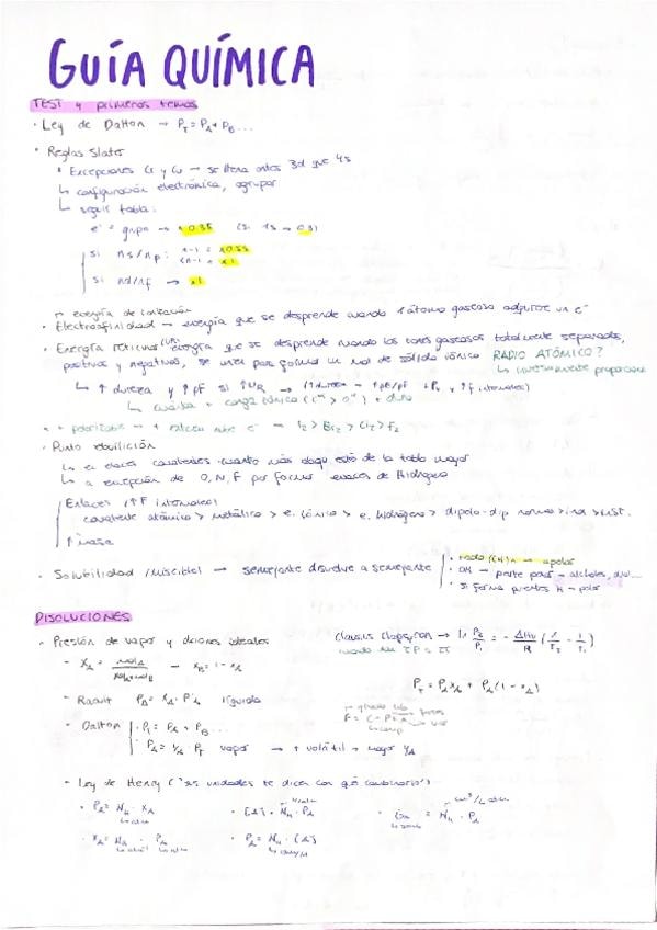Apuntes de química de todos los temas del primer parcial con fórmulas y notas