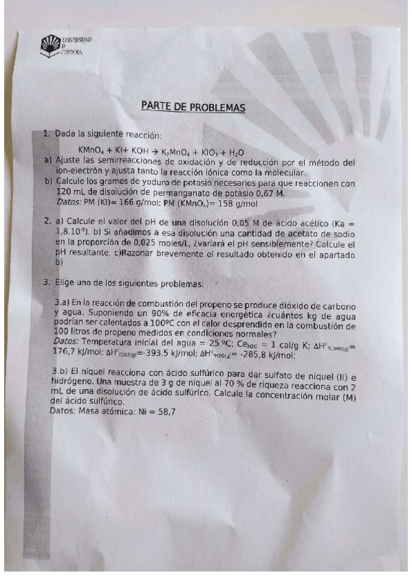 He publicado nuevos examenes de 1º Química: Examen Problemas RESUELTO 2021 Eléctrica
