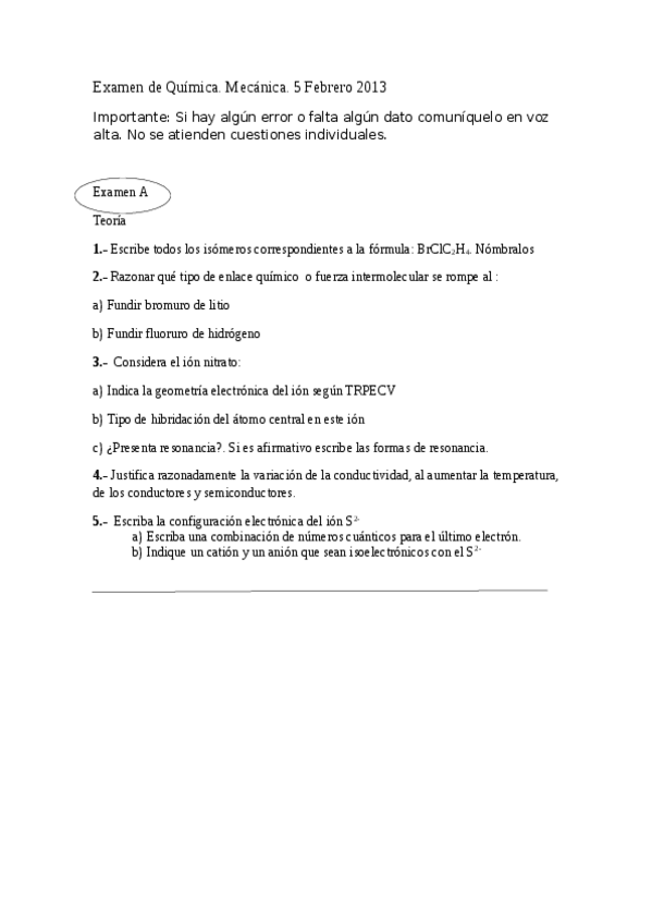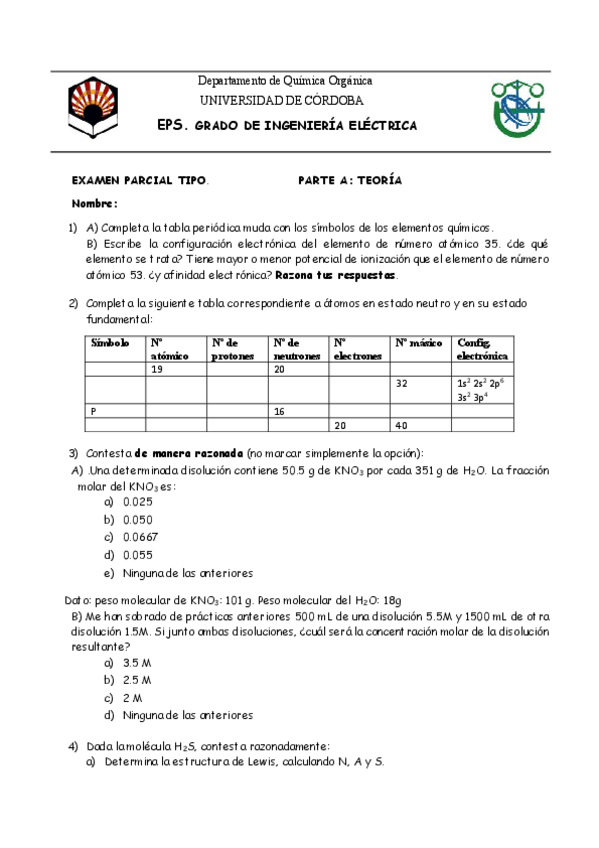 He publicado nuevos examenes de 1º Química: Examen Teoría RESUELTO 2021 Eléctrica