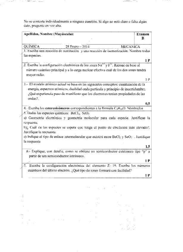 He publicado nuevos examenes de 1º Química: Examen Final enero 2017