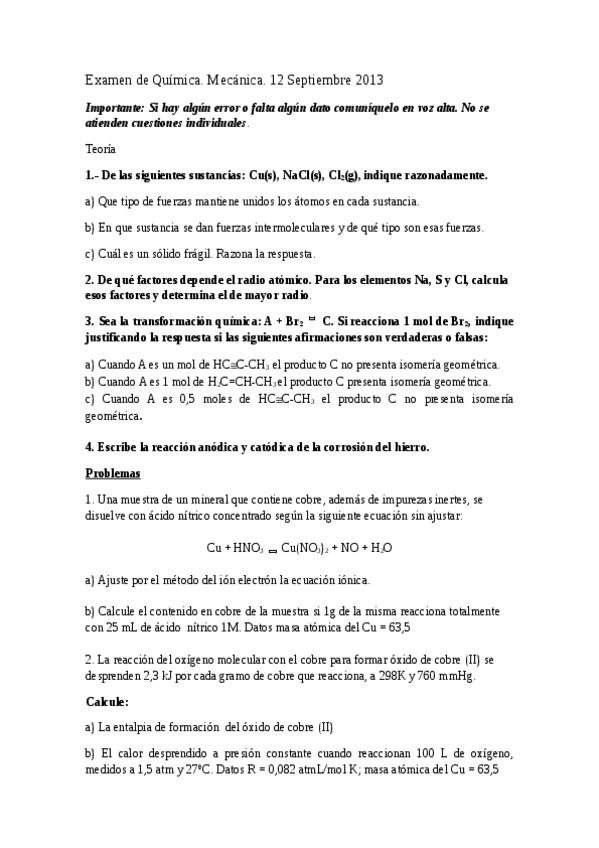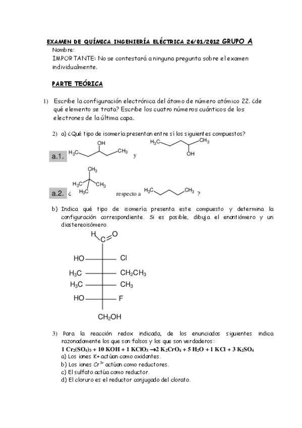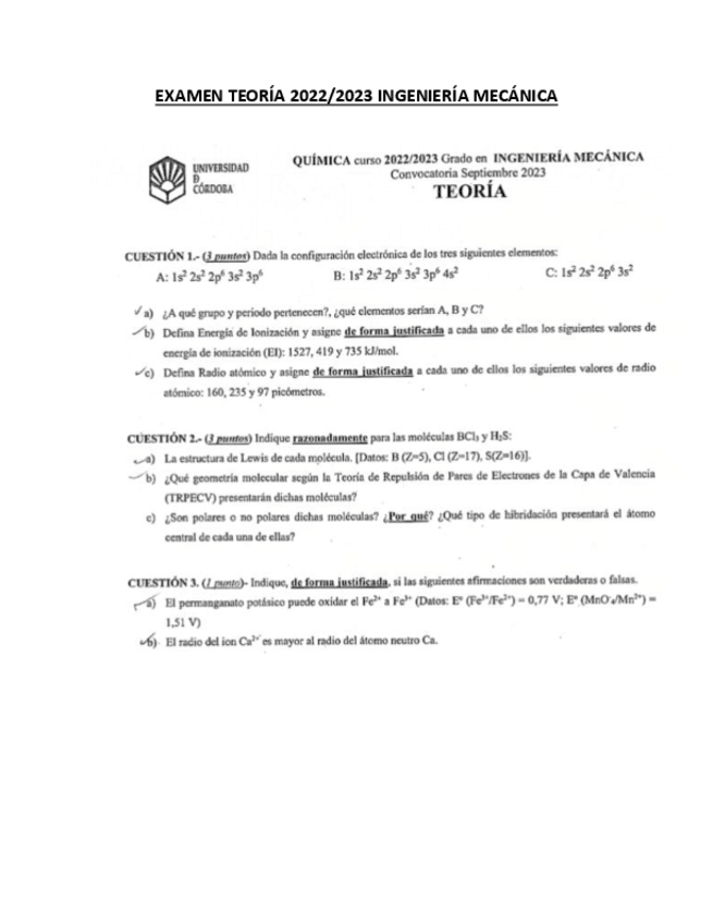 He publicado nuevos examenes de 1º Química: Examen Teoría RESUELTO 2021 Eléctrica