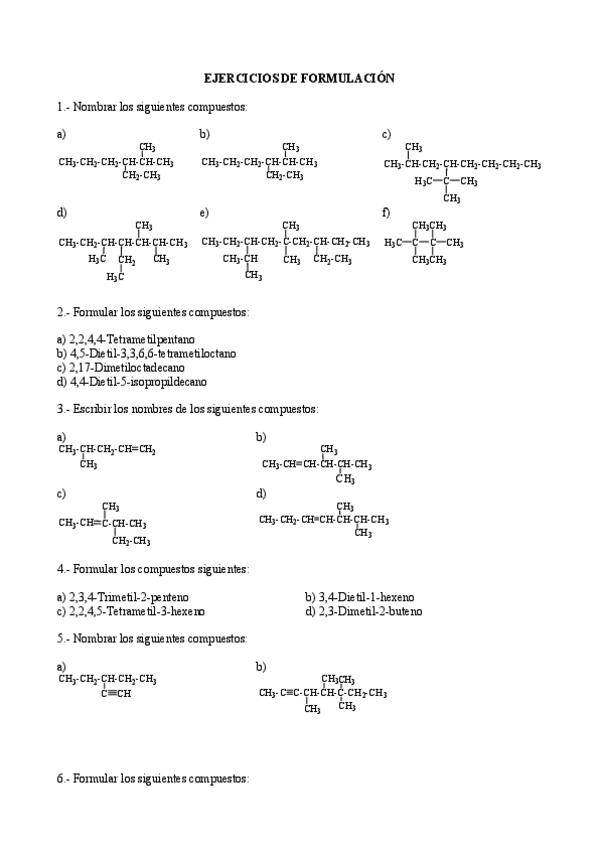Formulación Orgánica-Ejercicios propuestos