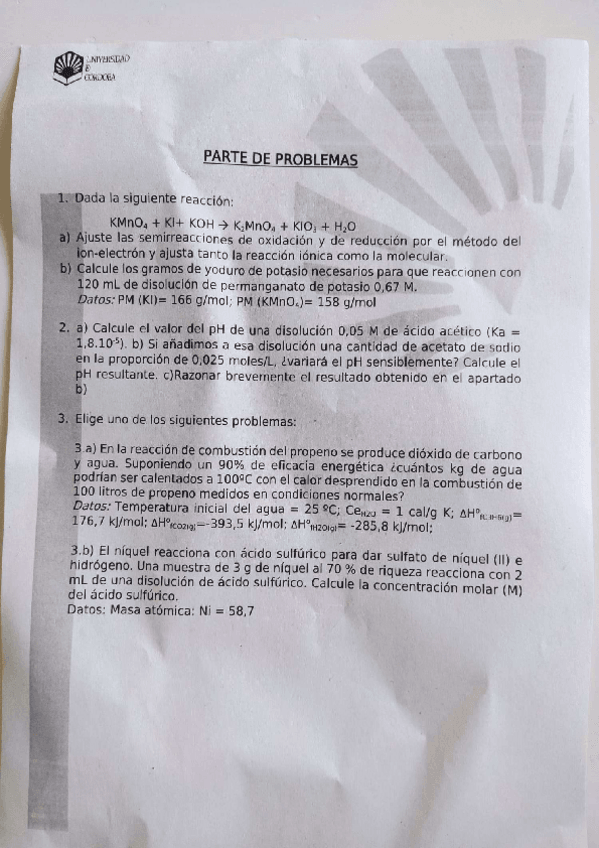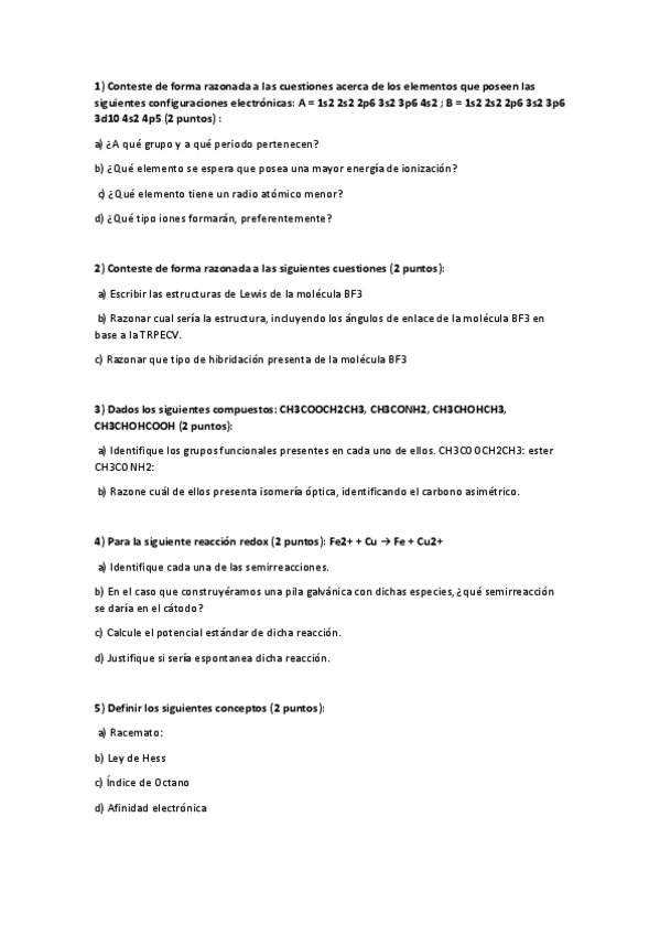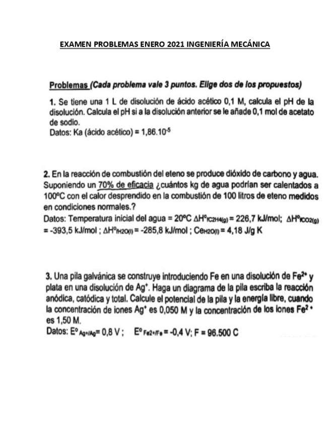 He publicado nuevos examenes de 1º Química: Examen Problemas RESUELTO 2021 Eléctrica