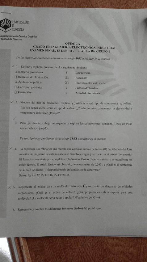 He publicado nuevos examenes de 1º Química: Examen Final enero 2017