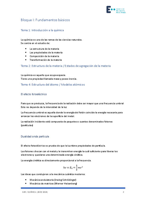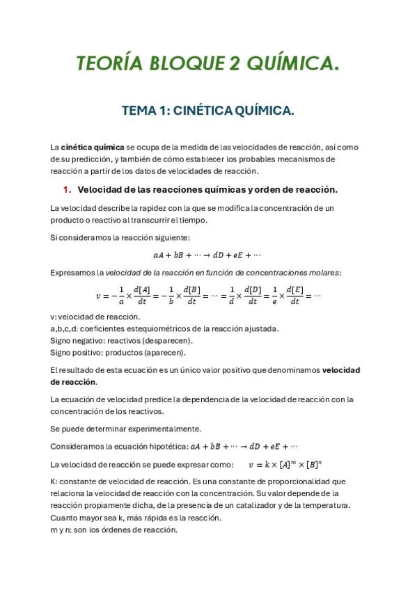 TODA LA TEORÍA NECESARIA PARA EL 1º PARCIAL DE QUÍMICA DEL BLOQUE 1. APUNTES DICTADOS POR LA PROFESORA MARÍA MORENO. TEMAS DEL 2 AL 8 (TEMA 1 SIN IMPORTANCIA PARA EL EXAMEN).