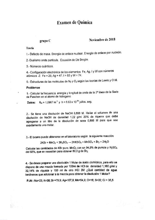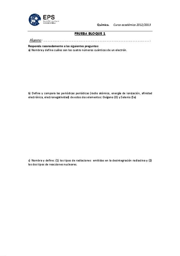 Examen parcial química bloque 1 y primeros dos temas del bloque 2. Curso 2024/25.
