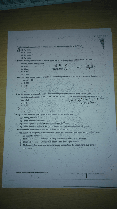 He publicado nuevos examenes de 1º Química: Fotos test