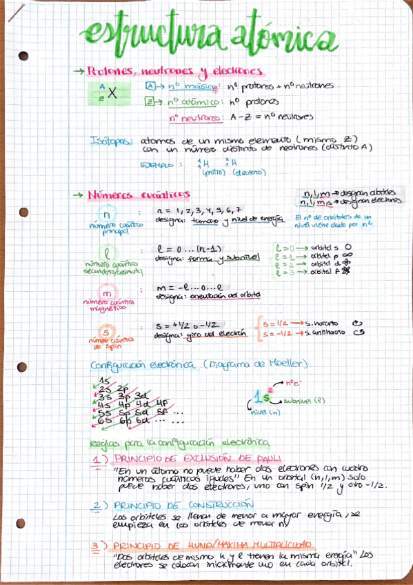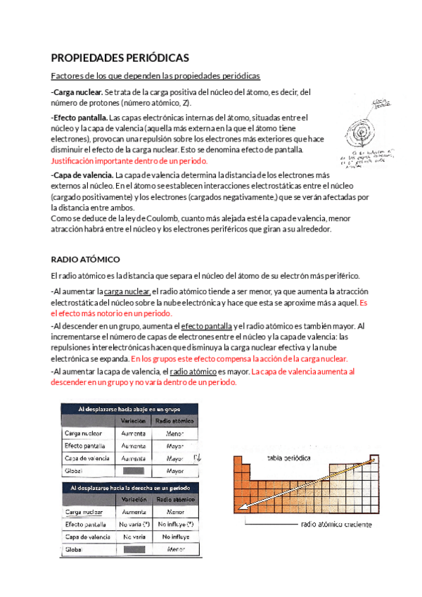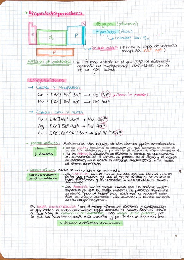 Resumen de estructura de la materia (configuración electrónica, tabla periódica y propiedades periódicas).