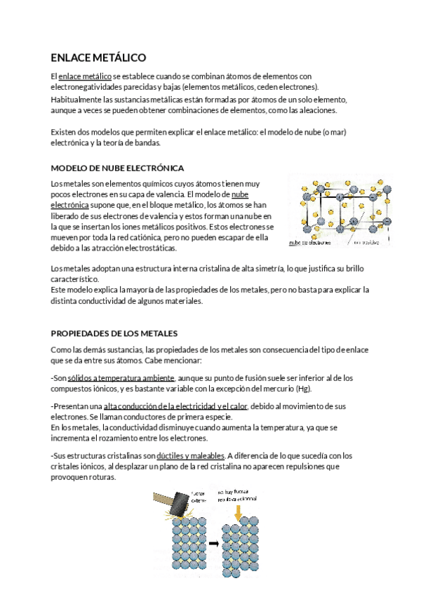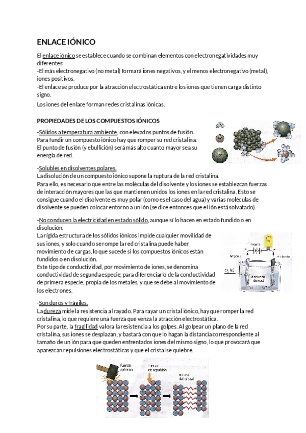 Resumen de enlace química (iónico, covalente, metálico y fuerzas intermoleculares). Con cuestiones.