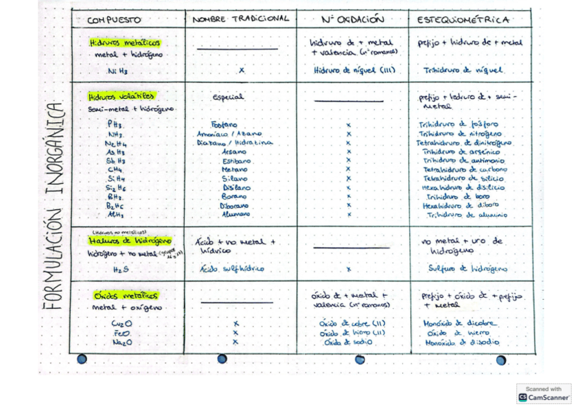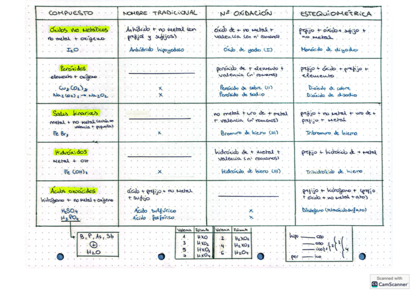 Tabla de formulación inorgánica (apta para 1º y 2º de bac, icluso 4º de la ESO)