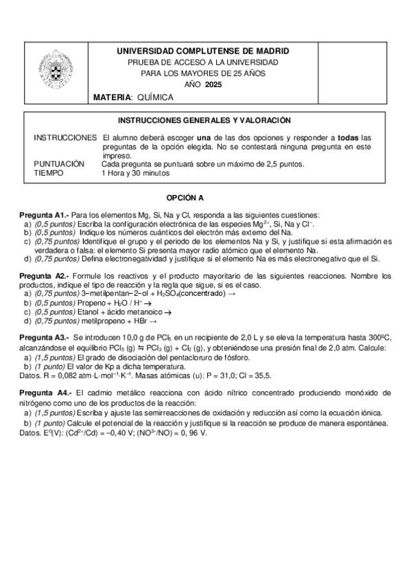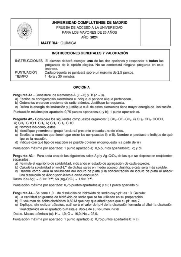 He publicado nuevos examenes de Química: Examenes Resueltos UCM Mayores de 25 años