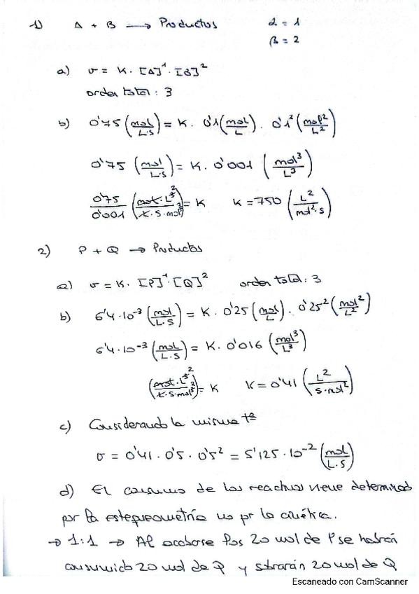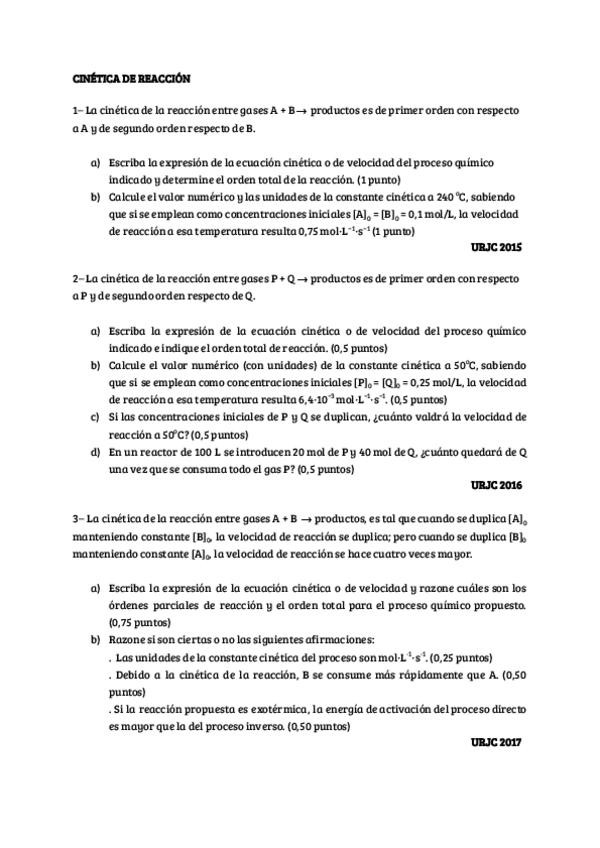 Ejercicios Cinética de Reacción. Prueba de acceso mayores 25. URJC