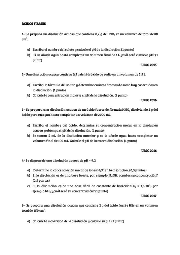 Ejercicios Ácidos y Bases con resoluciones. Prueba acceso mayores de 25. UTJC