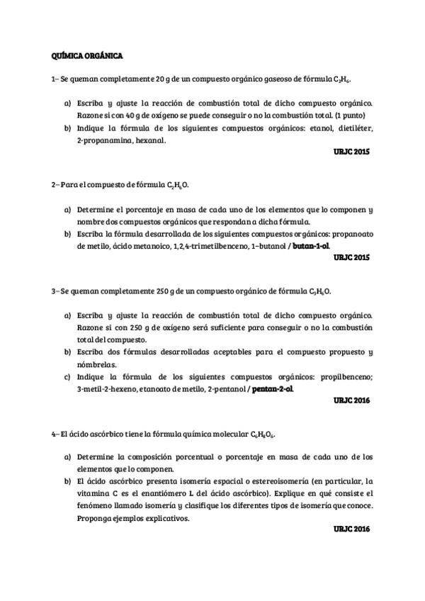 Ejercicios Orgánica con soluciones. Prueba de acceso mayores de 25. URJC.