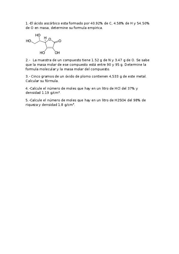 He publicado nuevos ejercicios de 1º Química: Ejercicios