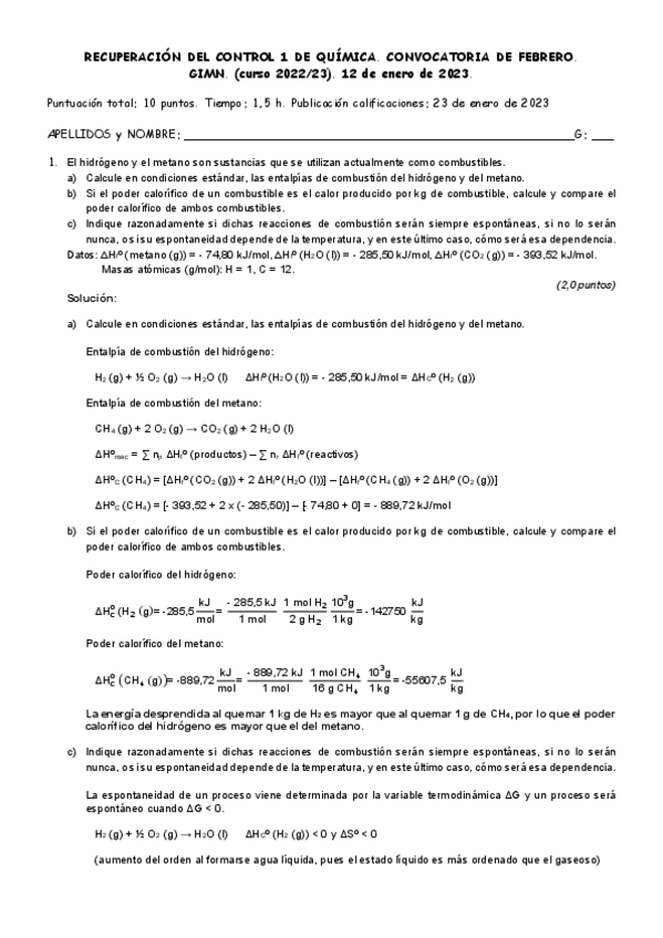 He publicado nuevos examenes de 1º Química: Quimicaenero2223soluciones.pdf