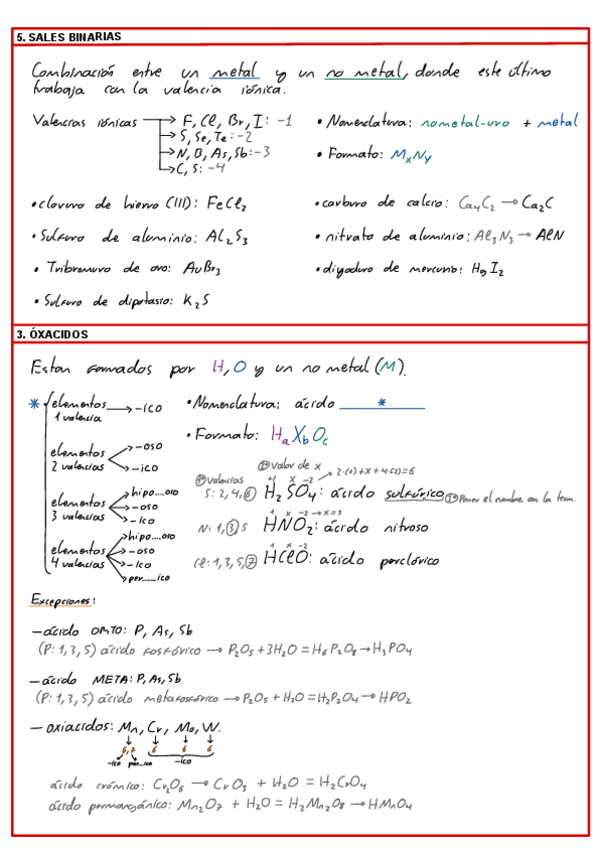 Formulación que aparece en los exámenes, ácidos, bases y sales de exámenes, etc.