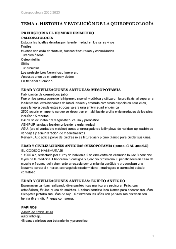TEMARIO COMPLETO QUIROPODOLOGÍA I 2022-23