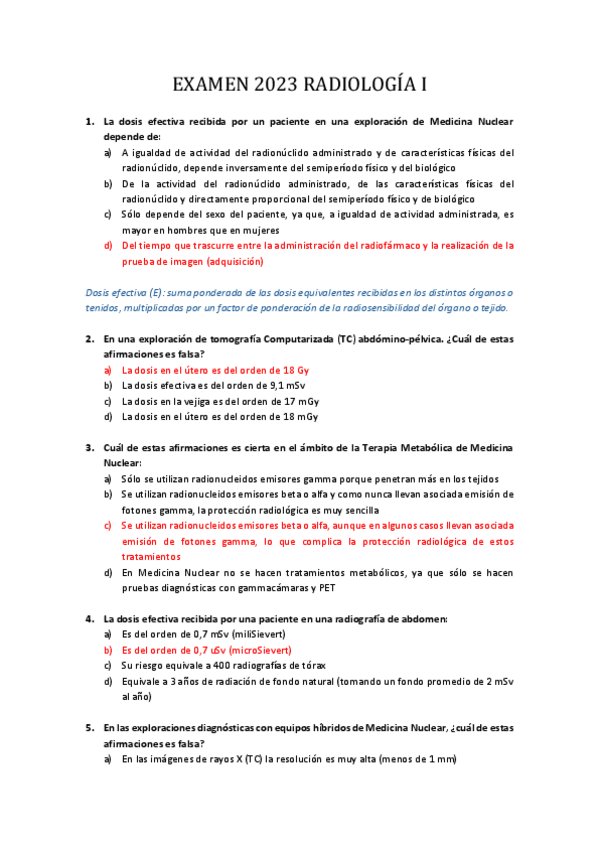 Examen 2023 Radiología I; las soluciones se han marcado en base a los apuntes de la comisión pero podemos haber cometido algún fallo ;)) se aceptan sugerencias!!