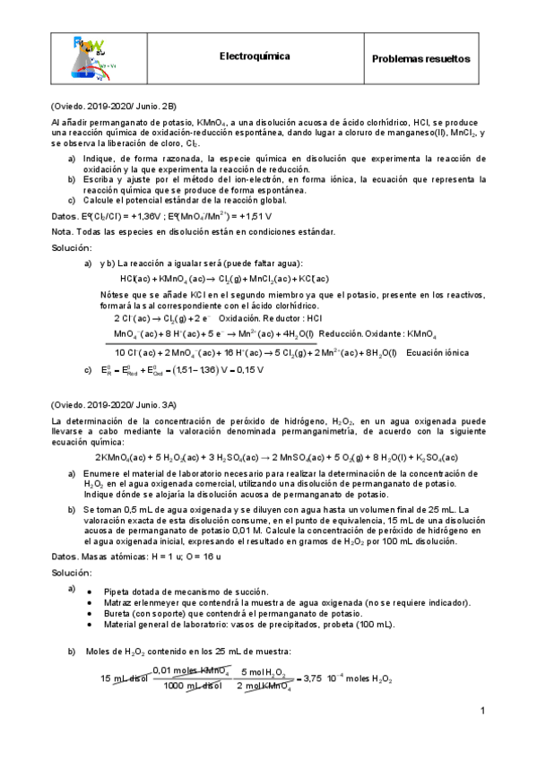 He publicado nuevos ejercicios de 1º Reacción Química: Electroquimica.pdf