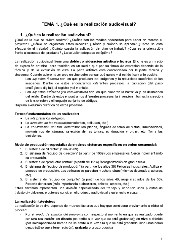 REALIZACIÓN I - Apuntes y Resumen pelis