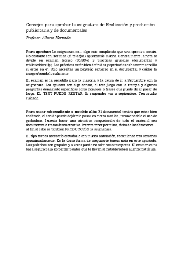 He publicado nuevos otros de 4º Realización y Producción Publicitaria y de Documentales: Consejos para aprobar la asignatura de Producción y realización publicitaria.pdf