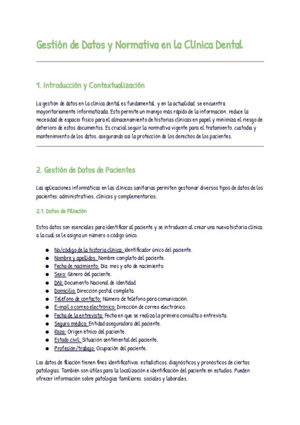 Subo apuntes del Tema 3 de RECEPCIÓN Y LOGÍSTICA EN LA CLÍNICA DENTAL de 1ro de Higiene Bucodental: GESTIÓN DE FICHEROS DE PACIENTES.
