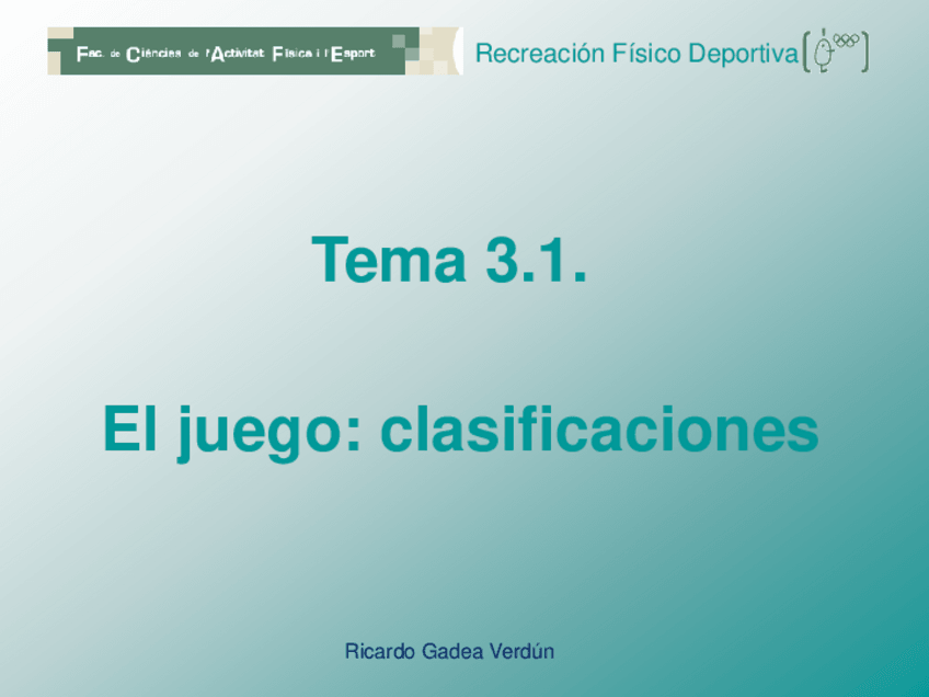 He publicado nuevos apuntes de 4º Recreación Físico Deportiva: TEORIA-RECREACION-21-22.pdf