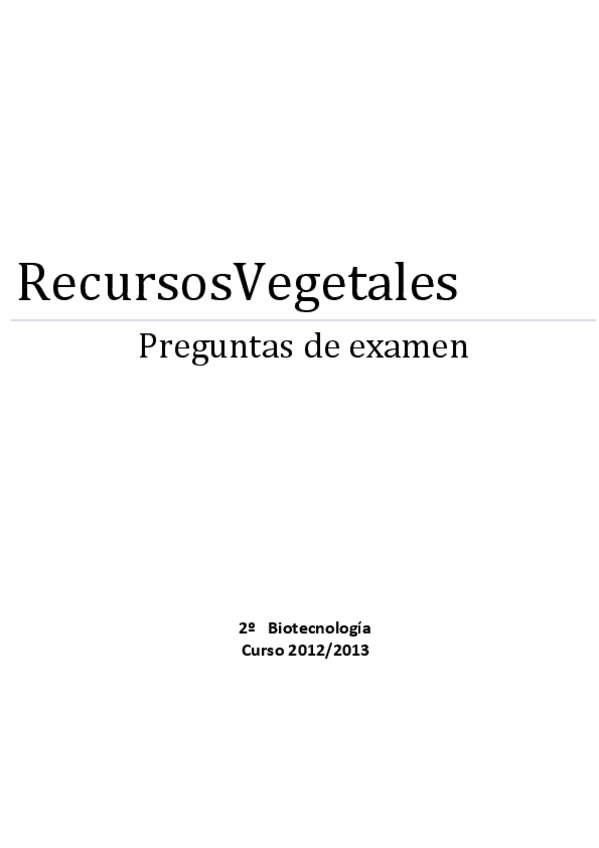 He publicado nuevos examenes de 4º Recursos Animales y Vegetales en Biotecnología: Preguntas. Examen Recursos Vegetales para la Biotecnología.pdf